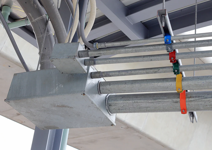 Build an overhead run of Track Busway over your work area—suspend lengths with hangers, join abutting sections with joiner kits, and then plug in PowerDrops exactly where you need them. The result is a continuous open-slot power run directly over the workspace.